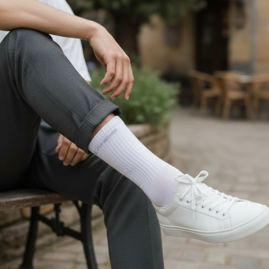 TRISH White/Grey/Black Crew Socks (Pack of 3) for Everyday Luxury